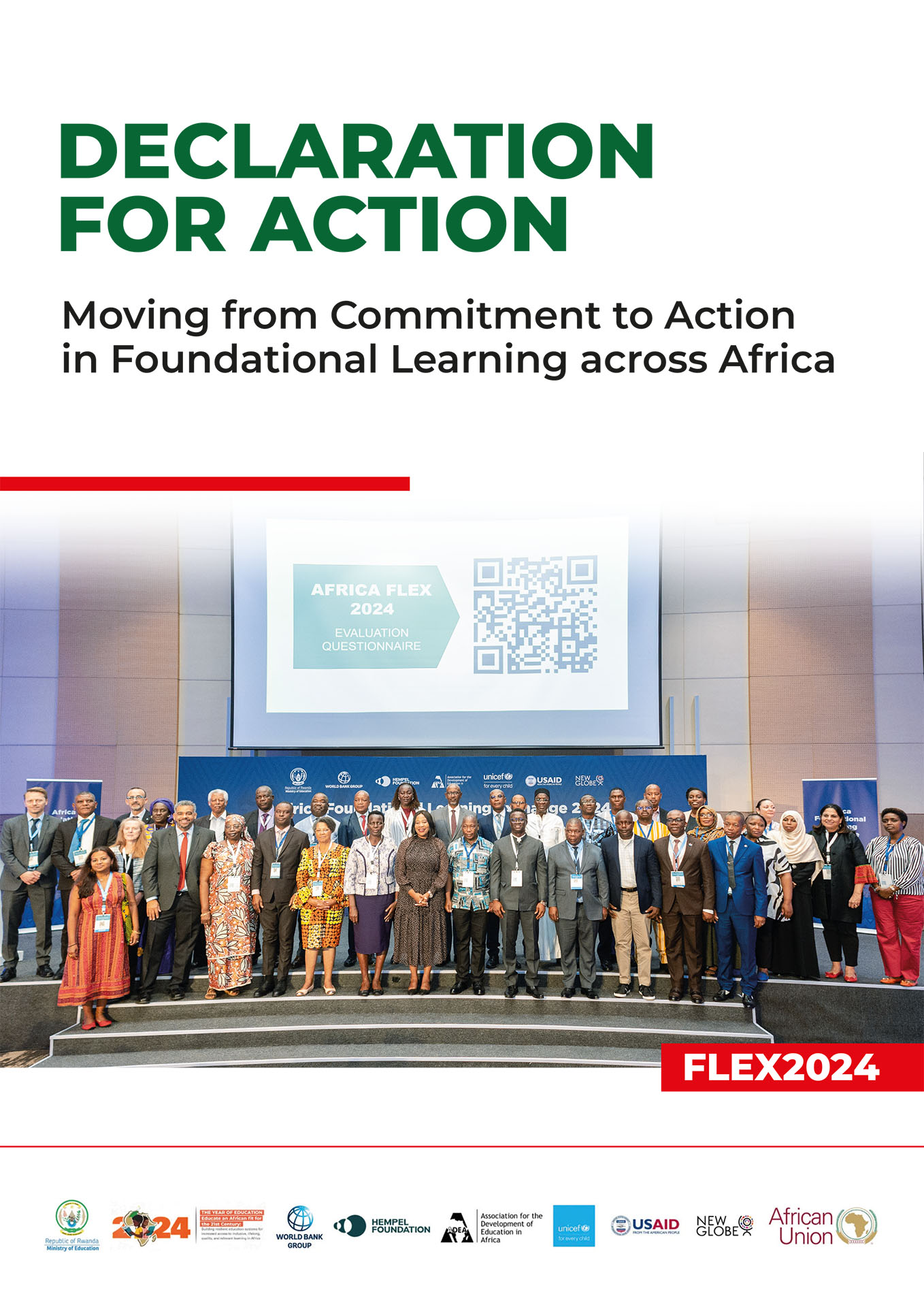 The FLEX 2024 Declaration for Action outlines a collective commitment by African Ministers of Education and partner organizations to accelerate progress toward universal foundational learning across the continent. Adopted at the Africa Foundational Learning Exchange (FLEX 2024) in Kigali, Rwanda, the declaration calls for coordinated action to end learning poverty in Africa by 2035 and ensure that every child acquires essential literacy, numeracy, and socio-emotional skills.