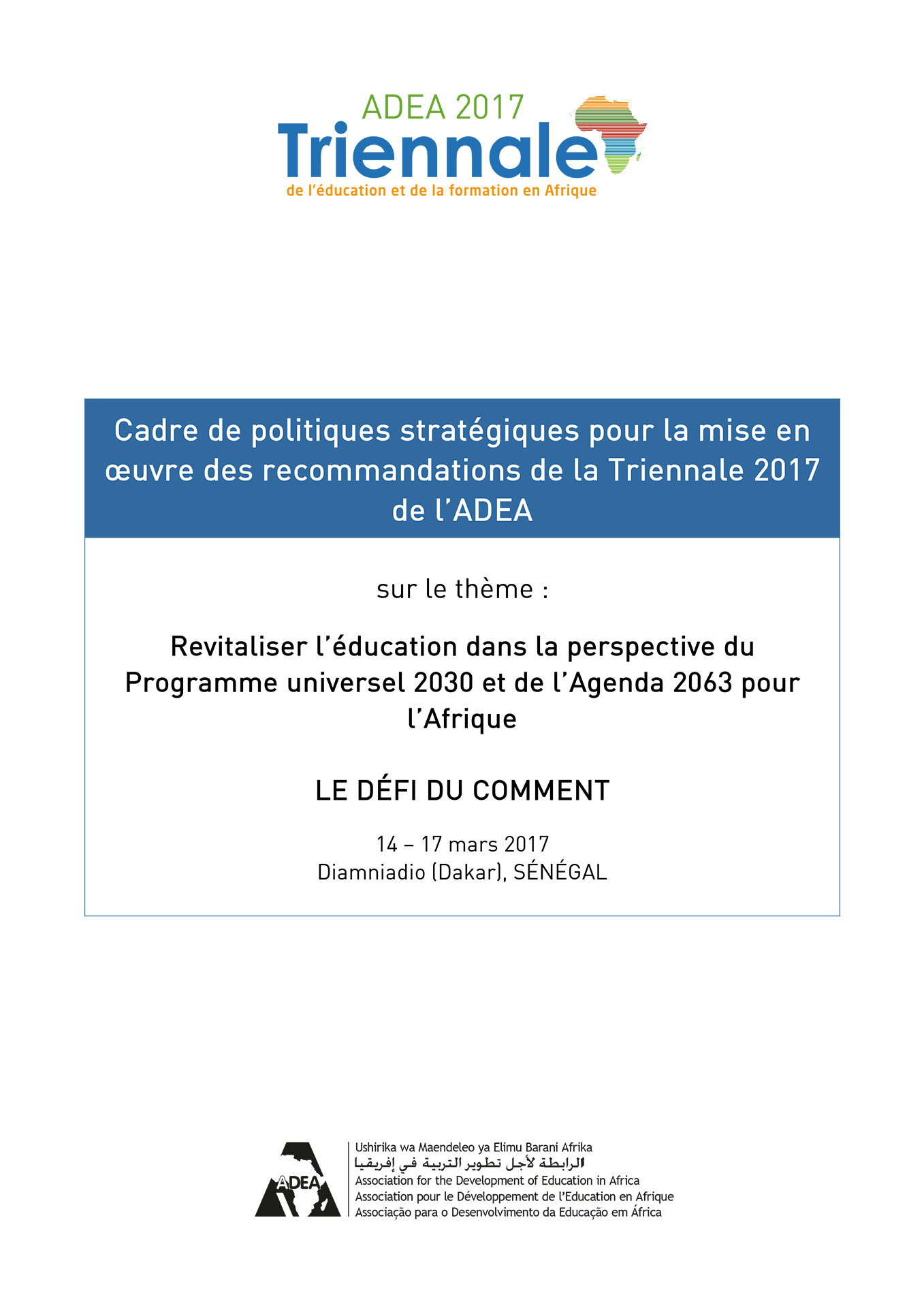 This framework provides insights on the choice of theme for the ADEA 2017 Triennale. The framework guides the operationalization of the continental roadmap adopted by policymakers at the Triennale, with policy-level strategies for countries to consider, aimed at achieving equitable quality education and lifelong learning for all Africans.